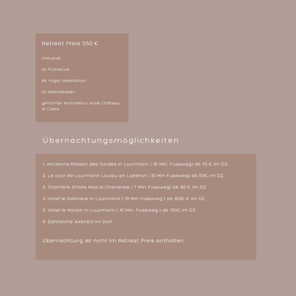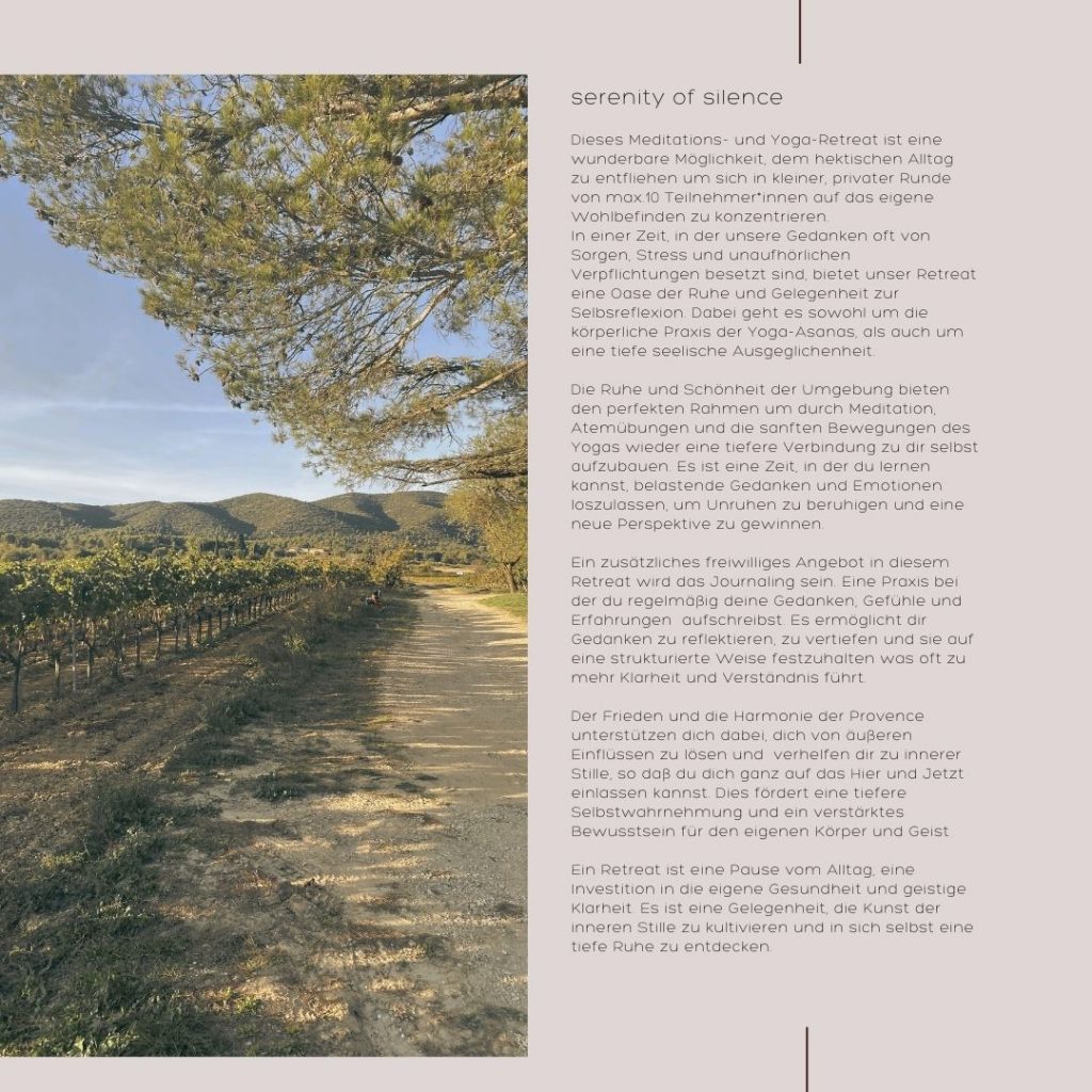 In der Schönheit der Provence findest Du einen Ort der Stille, an dem Du in kleiner Gruppe zur Ruhe finden kannst um Deinen Geist sanft in eine tiefere Verbindung zu Dir selbst einladen.