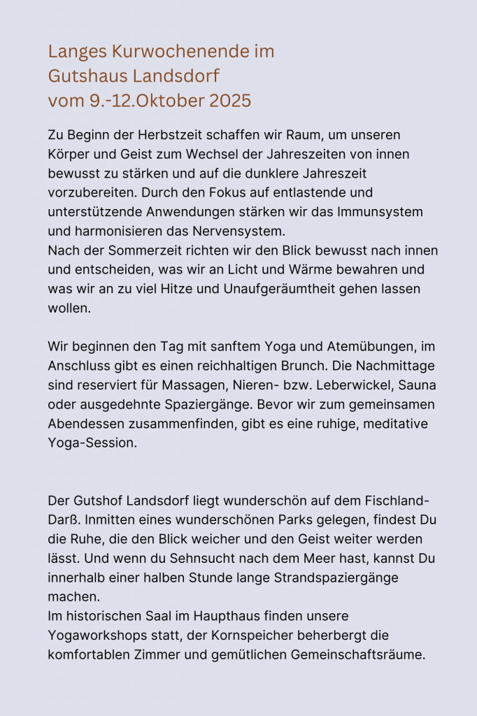 Langes Kur Wochenende vom 9.-12. Oktober 2025