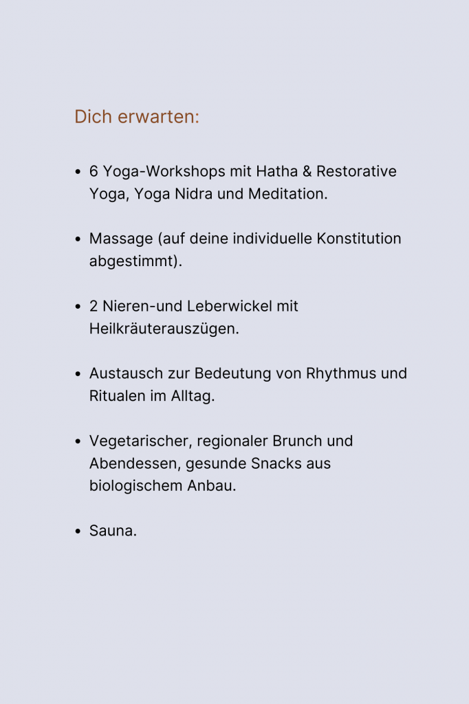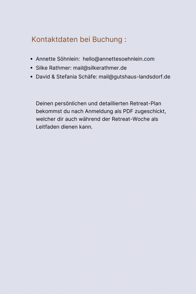 Der Rahmen des Retreats gibt viel Raum für individuelle Fragen und offenen Austausch. Wir freuen uns auf Dich.